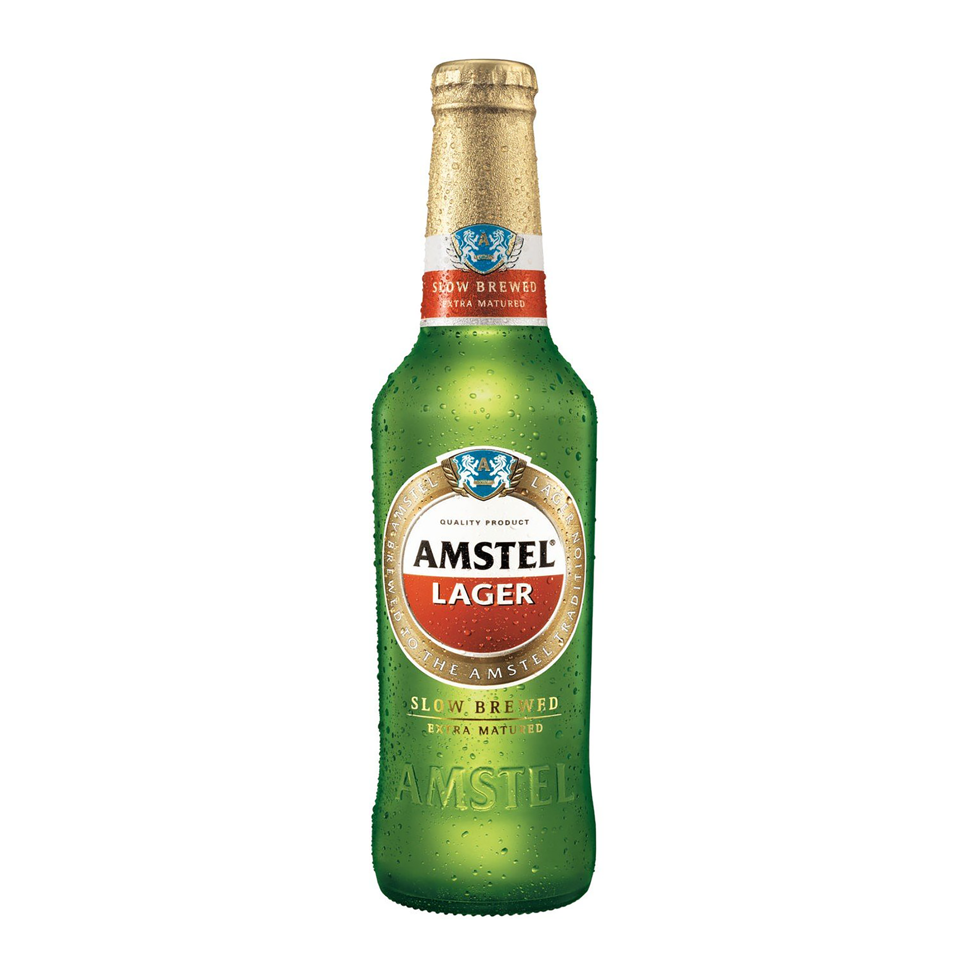 Amstel Premium Lager is the perfect mix of refreshment and taste. Its golden colour is developed using light and dark malt, giving Amstel Bier a sweet malt flavour with notes of dark fruit and raisins.