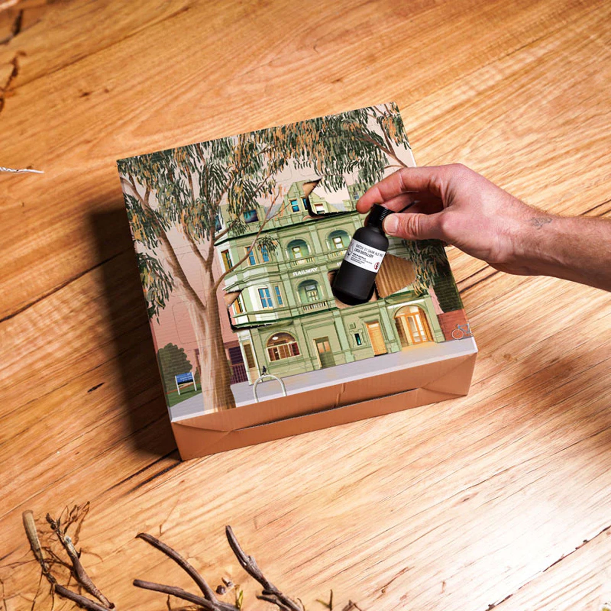 Each calendar includes digital access to detailed tasting notes and distillery profiles via a unique code. The box artwork, by Melbourne-based digital artist Parul Sen, pays tribute to the Railway Hotel in Brunswick, a 140-year-old building with a layered history and a new creative life in print.