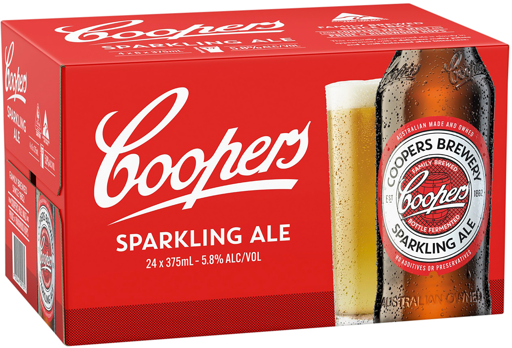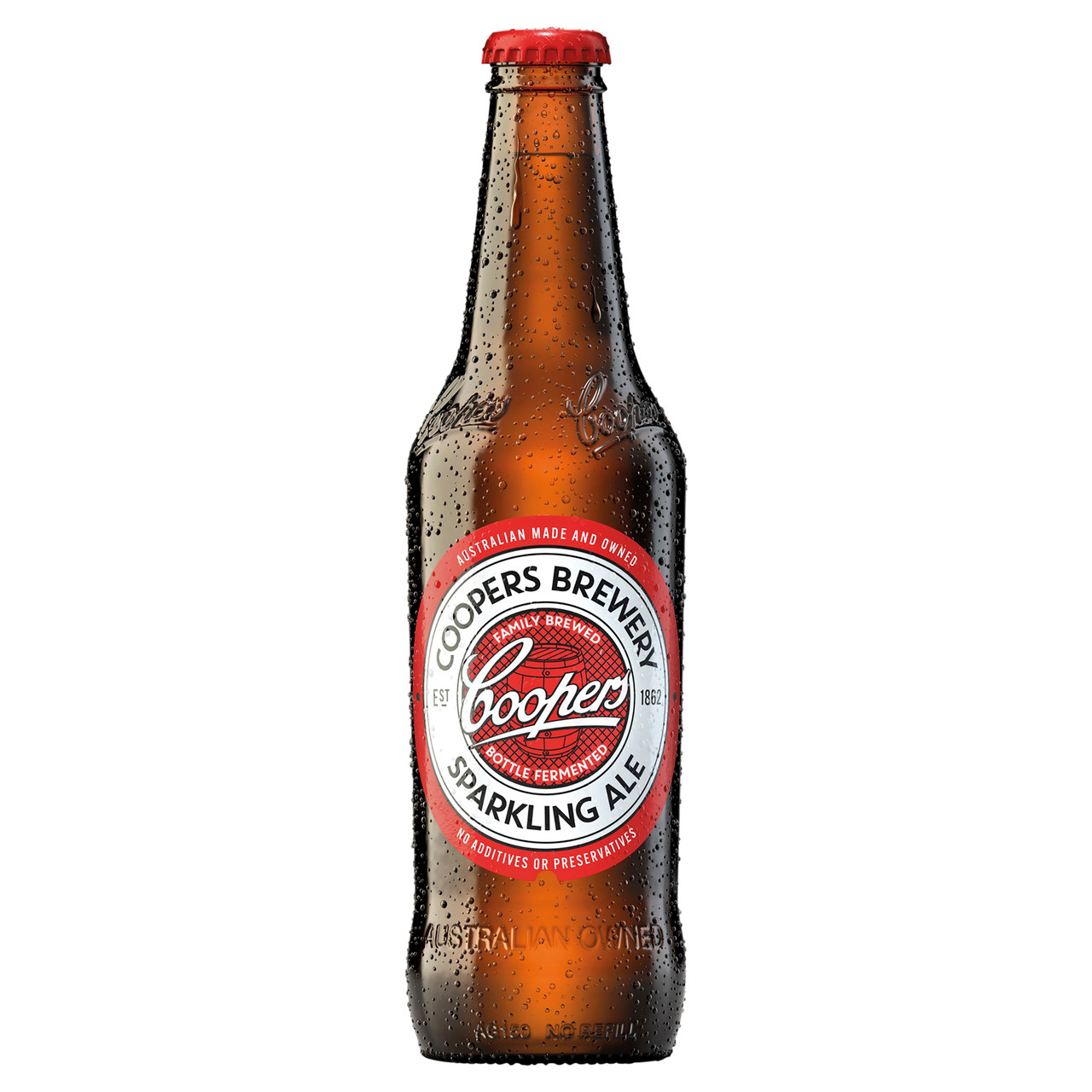 Coopers Sparkling Ale is brewed using quality raw materials and century old brewing techniques, which produce a complex flavour which is smooth enough to be very enjoyable with intense fruity and floral characters and displays a crisp bitterness and a full malt character.