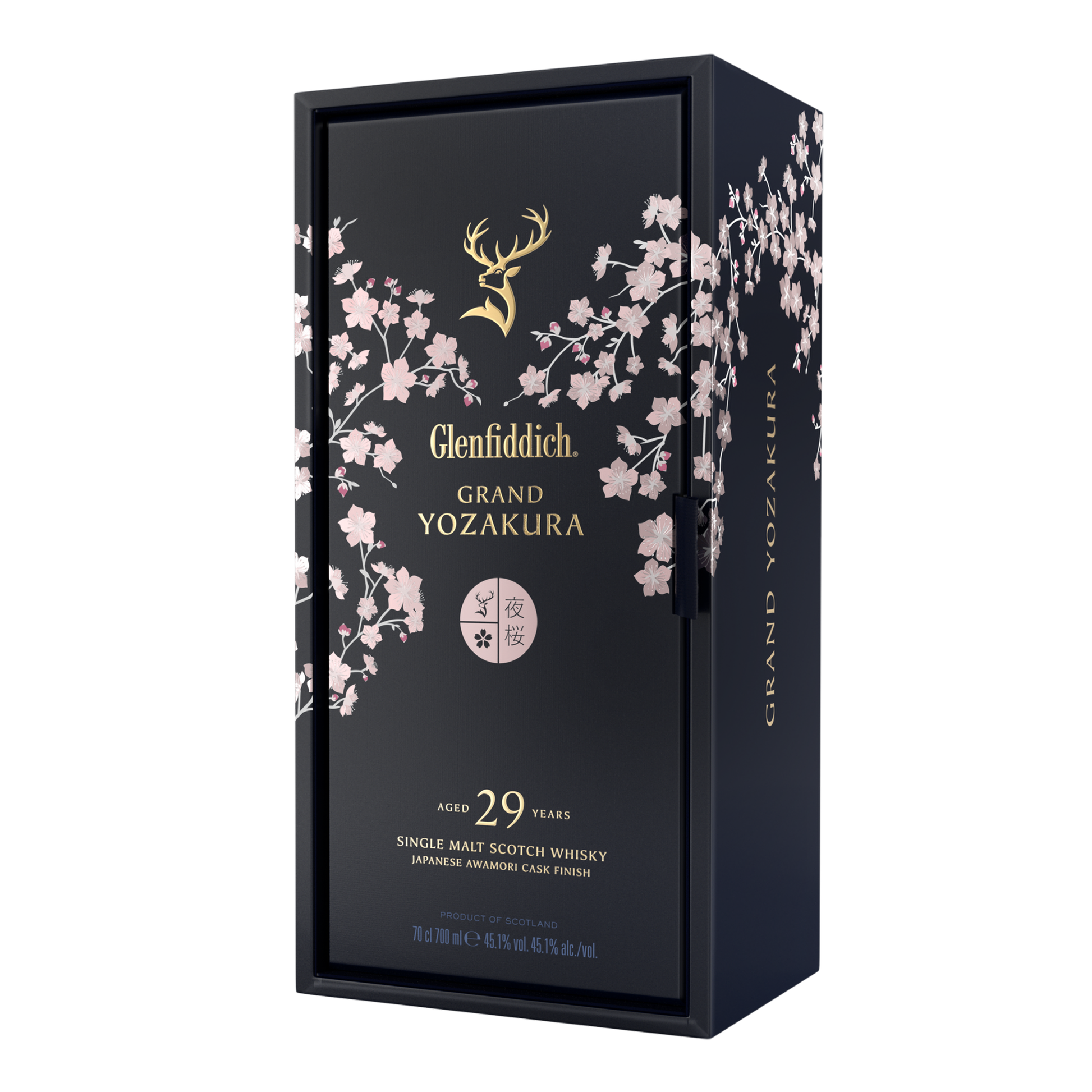 Grand Yozakura, 'cherry blossom viewing at night' in Japanese is the magical moment of fleeting beauty when the Japanese cherry blossoms are admired and celebrated under moonlight. Just like the moon and cherry blossoms coming together, so does the rarity and beauty of Glenfiddich 29yo whisky finished in Japanese ex-Awamori casks.