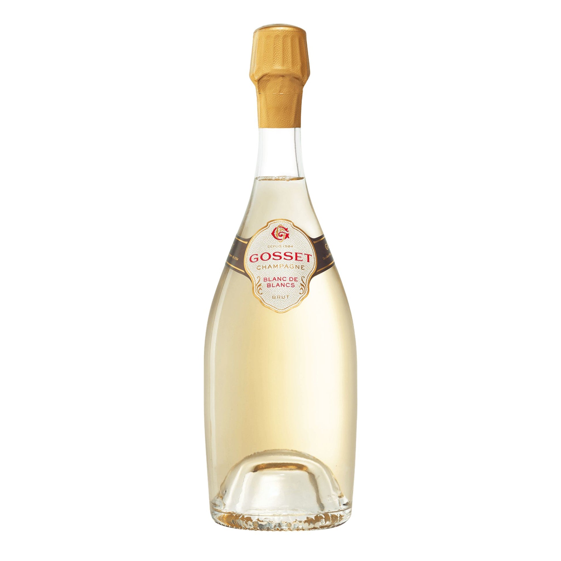 "Gosset's lemon-yellow NV Grand Blanc de Blancs - 100% Chardonnay blend sourced in Avize, Chouilly, Cramant, Villers-Marmery and Trépailopens - opens with a very clear, precise and concentrated bouquet. It is also pure and pretty coolish/greenish with chalk, herbs and lemon peels - really exciting! Very mineral and complex on the palate, this is a pure and finesse-full, but firmly structured and persistent Champagne with marjoram flavours in the long, stringent, tension-filled finish. This is a young and vital but serious, tightly woven and expressive, medium-bodied Champagne. It has an intense and deep taste, with excellent ageing potential. Impressive." - Robert Parker, 92 Points.