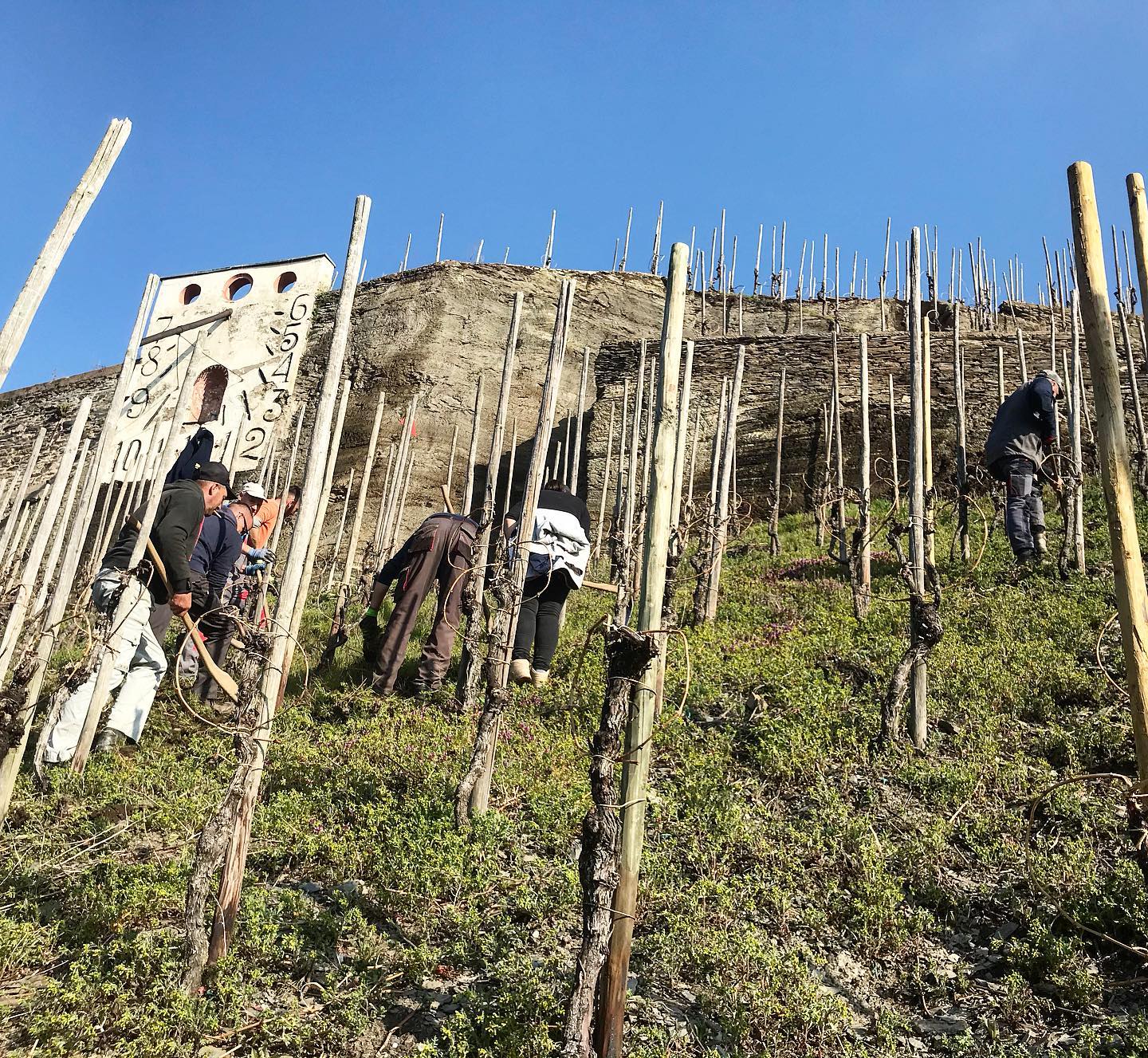 The major differences between the sites have to do with the variation in the aspect (from south to southwest) and the steepness and the depth of the soil. These are subtle differences, but make for wonderfully distinctive wines. Of course all the vineyards of J.J. Prüm are renowned, but the majestic Wehlener Sonnenuhr vineyard that is the most famous. The revered site lies opposite the village of Wehlen and the Estate owns seven hectares—largely planted to ungrafted wines—which has very thin topsoil over Devonian slate (in some areas of the vineyard the plants grow out of pure rock!). Wehlener Sonnenuhr has the highest pure stone content of all the Prüm vineyards, and along with neighbouring Zeltinger, the steepest of Prüm’s vineyards—with a dizzying 65-70% gradient in places. Wine writer Stuart Pigott summarises perfectly, “In top vintages the Wehlener Sonnenuhr yields the richest, silkiest, most seductive wines on the Mosel. The fame of these Rieslings is inextricably linked with that of the Joh Jos Prüm estate.”