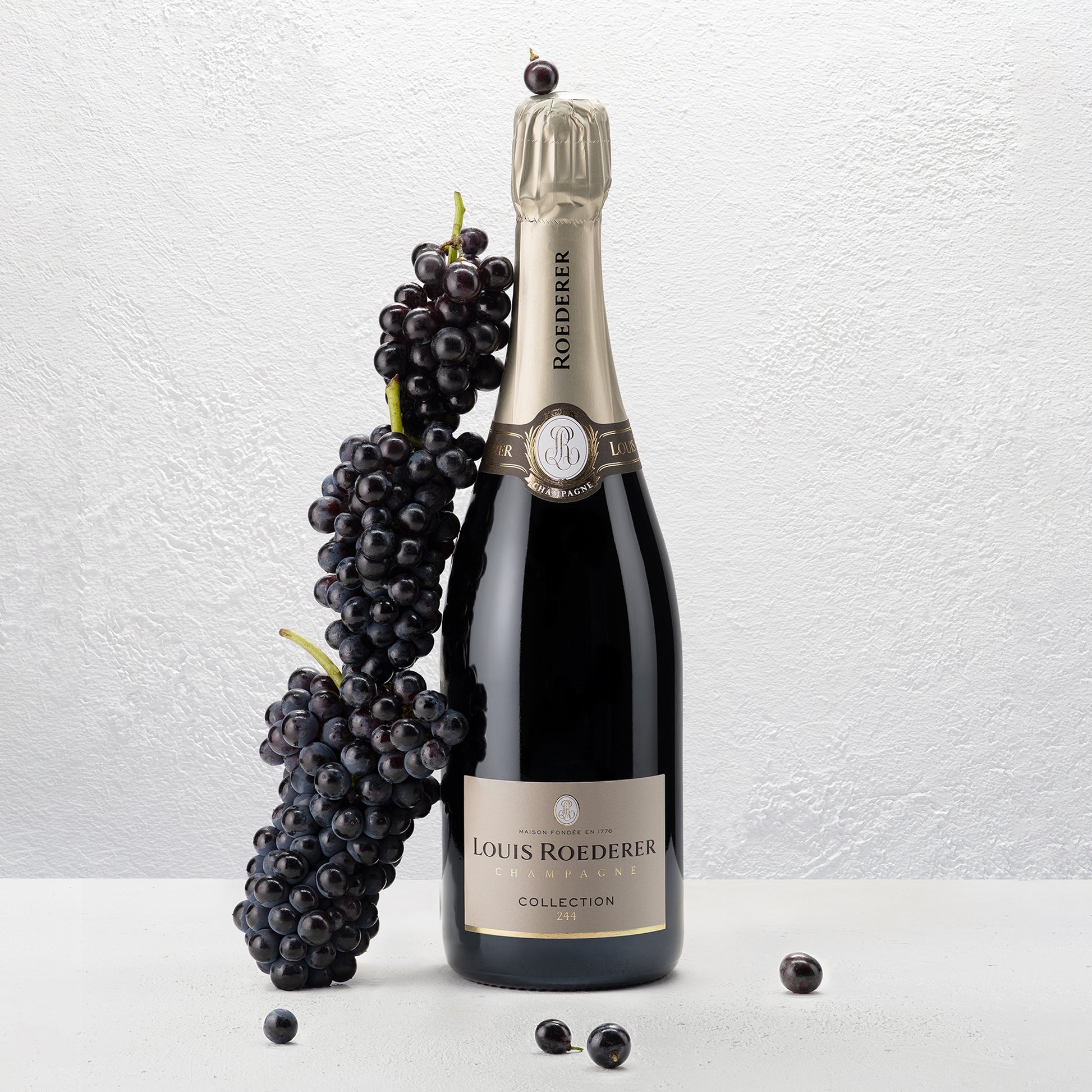 This beautiful gifting set contains one bottle of Louis Roederer Collection 244 NV and 2 Louis Roederer branded Champagne Glasses.