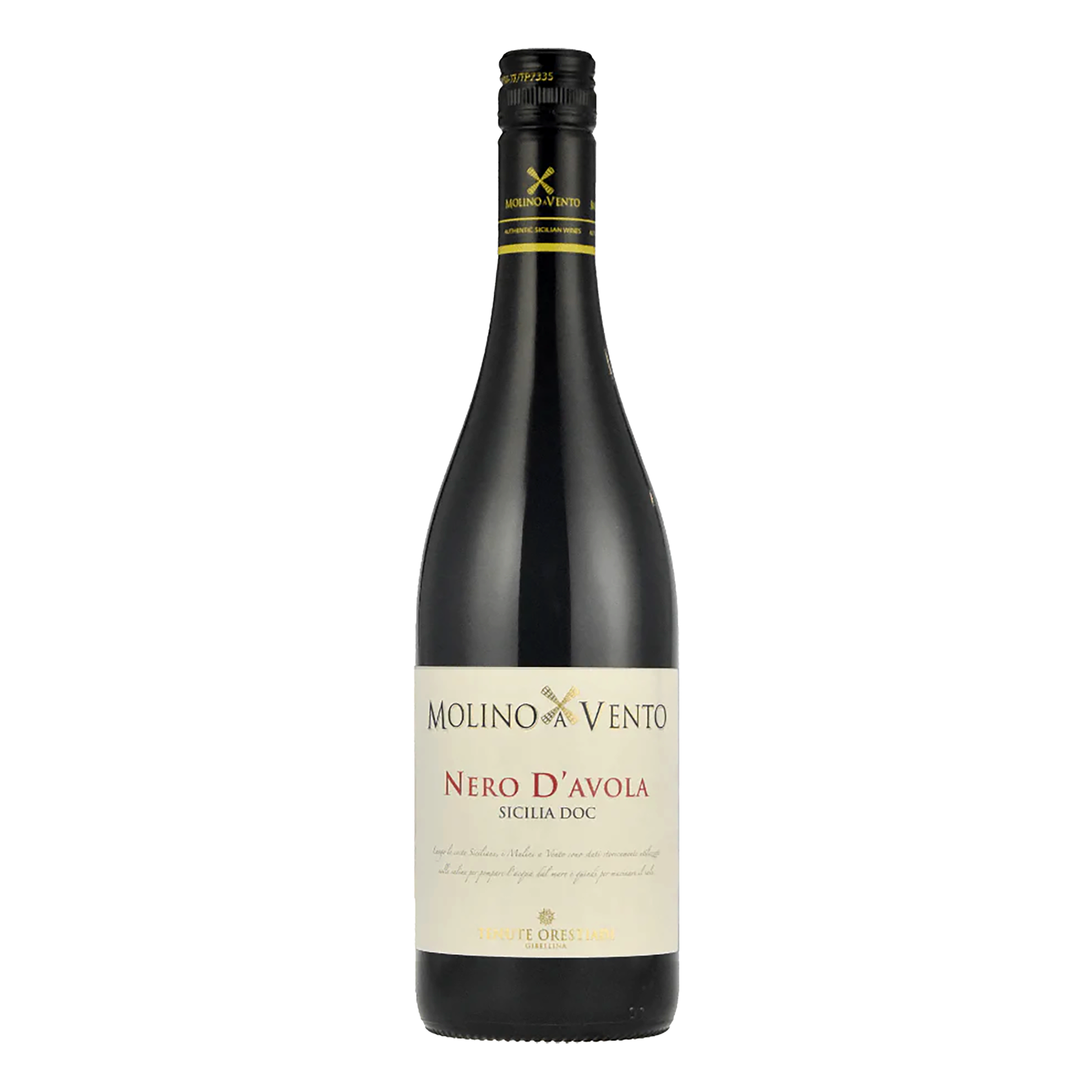 The Molino a Vento Nero d'Avola from Tenute Orestiadi has violet reflections, rich aromas of red fruits of mulberry and cherry. The palate is intense, smooth, with velvety taste and ripe tannins. It leaves a pleasant sensation of Mediterranean spices and cocoa. This wine pairs best with sicilian anelletti baked, pork sausage to the sauce, fresh pasta filata cheese