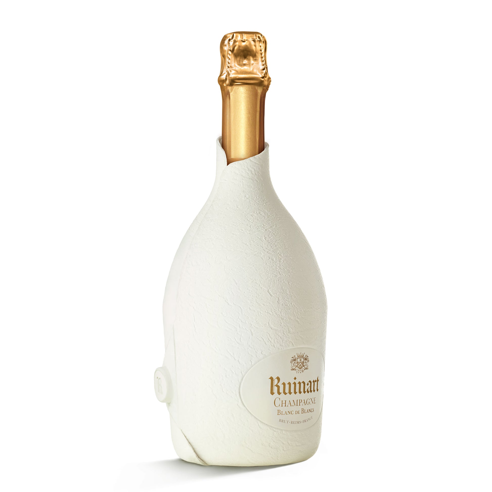 This bottle of Ruinart is wrapped in its Second Skin. A case to preserve the Ruinart's taste integrity until serving. Innovative, authentic and environmentally conscious, the second skin packaging crystallizes the commitment to sustainability of Maison Ruinart.